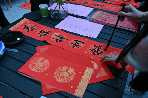 活動(dòng)當(dāng)天,鄭州市文聯(lián)的書(shū)法家們受邀來(lái)到現(xiàn)場(chǎng)。他們個(gè)個(gè)精神飽滿,手執(zhí)毛筆,在一張張紅紙上揮灑自如,書(shū)寫(xiě)著寓意深遠(yuǎn)的新年序言。這些序言既是對(duì)過(guò)去一年的總結(jié),也是對(duì)新年的美好期許。書(shū)法家們的精彩表演贏得了現(xiàn)場(chǎng)觀眾的連連稱贊,租戶們紛紛表示:“書(shū)法家們寫(xiě)的字真是太好了!‘福’字看著就喜慶,春聯(lián)的寓意也都非常美好。”