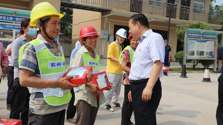 為切實(shí)做好防暑降溫工作,給項目工友送去清涼,鄭州市總工會精心準(zhǔn)備了夏季防暑降溫用品和礦泉水。市總工會、消防救援支隊領(lǐng)導(dǎo)為一線職工送去防暑降溫用品,慰問看望一線職工,將工會組織的關(guān)懷送到職工心坎上。