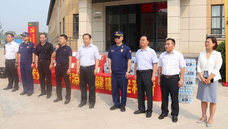 進(jìn)入夏季以來,持續(xù)出現(xiàn)的高溫天氣,給奮戰(zhàn)在建設(shè)一線的施工人員帶來嚴(yán)峻考驗(yàn),廣大職工不畏酷暑,堅守崗位,辛勤付出。為做好廣大職工的防暑降溫工作,切實(shí)保護(hù)職工身體健康,6月11日,鄭州市總工會、鄭州市消防救援支隊到鄭州地產(chǎn)集團(tuán)西流湖公司中原新區(qū)土地一級開發(fā)項目指揮部開展主題為“送清涼、送安全、送健康、促和諧”的夏季送清涼活動。鄭州市一級巡視員、市總工會黨組書記、主席趙新中,市消防救援支隊副支隊長、滅火救援指揮部部長李隆,市總工會副主席宋少丹,鄭州地產(chǎn)集團(tuán)有限公司監(jiān)事會主席、工會主席李靜波及西流湖公司黨支部書記、董事長、總經(jīng)理吉獻(xiàn)亮等領(lǐng)導(dǎo)出席活動?;顒佑晌髁骱靖笨偨?jīng)理昌磊主持。