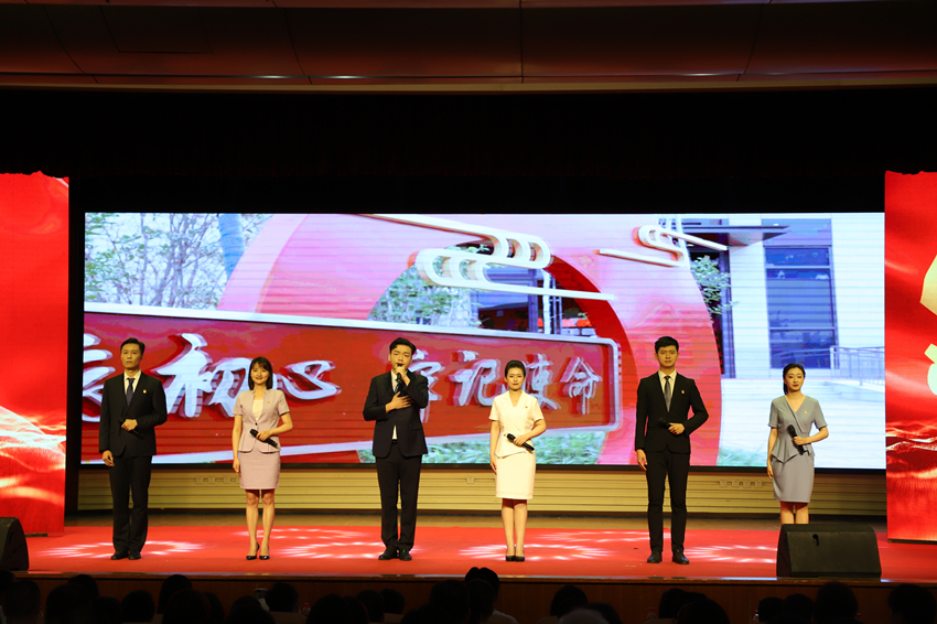 決賽中,來(lái)自鄭州地產(chǎn)集團(tuán)西流湖公司的曹珂、魯照宇、白承灝和來(lái)自鄭州地產(chǎn)集團(tuán)鄭地發(fā)展公司的張雅欣、單凌云、康宇皓用生動(dòng)的語(yǔ)言、昂揚(yáng)的風(fēng)貌,講述了中國(guó)共產(chǎn)黨建黨百年來(lái)帶領(lǐng)人民求解放、謀復(fù)興的輝煌歷程,講述了鄭地人為城市發(fā)展繪就宏偉藍(lán)圖、奏鳴城市交響的生動(dòng)實(shí)踐,講述了共產(chǎn)黨員主動(dòng)擔(dān)當(dāng)、奮發(fā)有為,為黨旗增光添彩的初心使命,用“百年交響”唱出獻(xiàn)給黨的深情贊歌,不僅展示出新時(shí)代國(guó)資國(guó)企黨員干部愛(ài)黨愛(ài)國(guó)的情懷和昂揚(yáng)向上的精神面貌,更為觀眾帶來(lái)了一場(chǎng)精彩的視聽(tīng)盛宴。