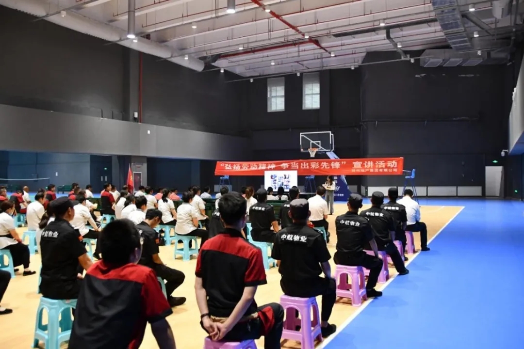 宣講團(tuán)第一組赴鄭地奧體公司在奧體中心綜合訓(xùn)練館展開宣講,鄭地奧體、中航物業(yè)保潔及安保等一線員工共100余人參加了此次宣講活動。來自黨群黨支部王曉婕、人力資源黨支部馬遠(yuǎn)俊、黃河兩岸公司黨支部吳林熹、都市開發(fā)公司黨支部馮靜、投資管理公司黨支部范瑩,從學(xué)習(xí)貫徹習(xí)近平總書記重要回信精神、“講好黃河故事”、“ 絲路精神”和共筑中國夢等方面,通過身邊人身邊事,以小見大,講述了一個個平凡而偉大的勞動者的故事,號召全體黨員同志進(jìn)一步樹立勞動觀念、弘揚勞動精神,爭做出彩鄭地人,以一流的業(yè)績和實際行動擔(dān)當(dāng)重任,為集團(tuán)高質(zhì)量發(fā)展貢獻(xiàn)力量。