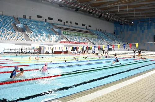 鄭州奧體中心游泳館位于鄭州奧體項(xiàng)目東南端(中原區(qū)長(zhǎng)椿南路與博體路交匯處),是鄭州市甲級(jí)游泳場(chǎng)館,鄭州奧體中心游泳館建筑面積1.9萬(wàn)平方米,館內(nèi)設(shè)有3100個(gè)固定座席,擁有標(biāo)準(zhǔn)10道50米競(jìng)賽池,10道50米訓(xùn)練池,10道25米教學(xué)池,既有可以承辦國(guó)際賽事的專(zhuān)業(yè)級(jí)比賽場(chǎng)館,又有滿(mǎn)足全民運(yùn)動(dòng)的標(biāo)準(zhǔn)泳池,更配備了完善的更衣休閑區(qū)及全館智慧科技系統(tǒng),市民朋友可以盡享宏偉水上場(chǎng)館的視覺(jué)沖擊與暢快運(yùn)動(dòng)的極致體驗(yàn)!