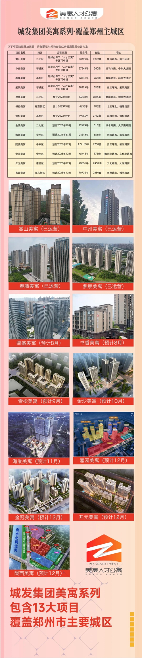 鄭州城市發(fā)展集團有限公司自覺踐行“讓城市更美麗、讓生活更美好”的企業(yè)使命,持續(xù)聚焦城市有機更新項目,積極為鄭州高品質(zhì)城市建設(shè)貢獻力量。鄭州城發(fā)集團圍繞市委、市政府引才工作要求,全力打造“美寓”系列人才公寓,不斷優(yōu)化人才發(fā)展環(huán)境,讓人才在鄭州既能盡情施展才華、又能悅享生活。