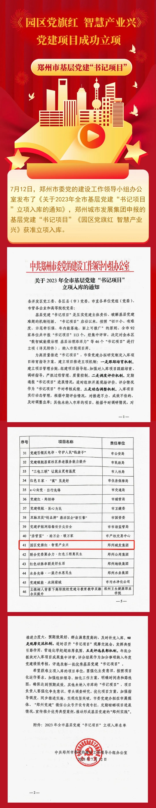 《園區(qū)黨旗紅 智慧產(chǎn)業(yè)興》黨建項目成功立項鄭州市基層黨建“書記項目”