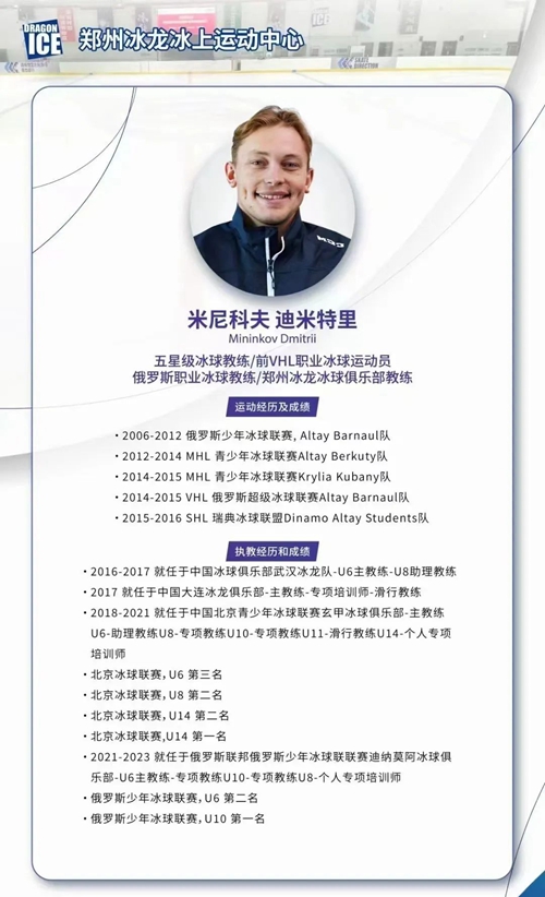 鄭州奧體冰龍冰上運動中心是一座現(xiàn)代化冰上訓(xùn)練綜合場館。新年伊始,冰龍冰上運動中心迎來國際知名冰球教練米尼科夫·迪米特里,國家E級教練員趙鐵北、馬騰飛入駐,將通過豐富的執(zhí)教經(jīng)驗和專業(yè)知識,為河南冰雪運動注入鮮活動力!