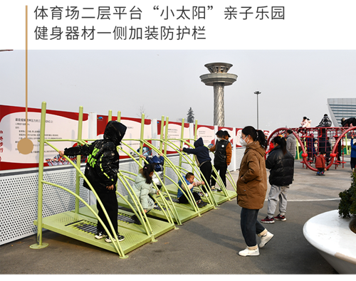 快樂成長,安全為先。為了確保兒童游樂區(qū)的安全,鄭州奧體中心從細(xì)節(jié)處著手精心加裝了多種防護裝置,在奧體中心西北角區(qū)域加裝隔離花箱、石墩,確保行人與機動車分離。同時,在體育場二層平臺兒童聚集較多的天井內(nèi),加裝防護網(wǎng);在健身器材一側(cè)加裝防護欄;在通往二層平臺的步梯兩側(cè)加裝防滑球......這些防護裝置均經(jīng)過嚴(yán)格的現(xiàn)場論證和質(zhì)量檢測,確保其具有優(yōu)異的耐用性和穩(wěn)定性。通過這些措施,鄭州奧體中心致力于為孩子們打造一個既充滿樂趣,又安全無虞的游樂環(huán)境。