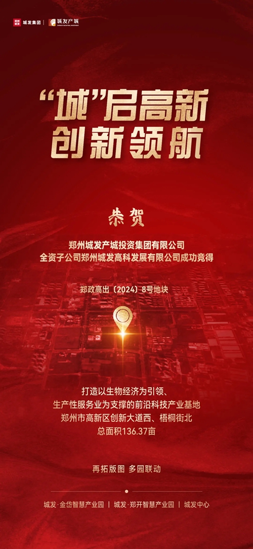 9月29日,鄭州城發(fā)產(chǎn)城投資集團(tuán)有限公司全資子公司鄭州城發(fā)高科發(fā)展有限公司成功競(jìng)得鄭政高出〔2024〕8號(hào)地塊,該地塊位于鄭州市高新區(qū)創(chuàng)新大道西側(cè)、梧桐街北側(cè),為一類(lèi)工業(yè)用地(小微企業(yè)園用地),總面積136.37畝。