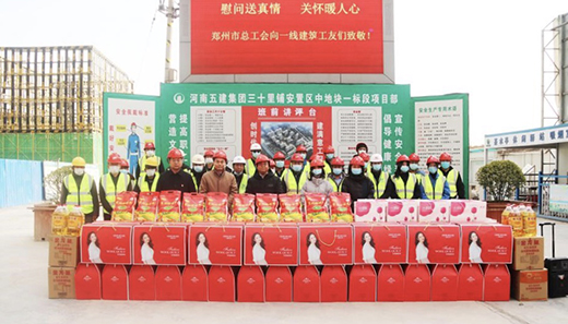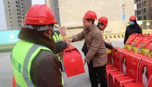 春節(jié)將至,為將工會組織的溫暖及時送到廣大工友手中, 2月7日下午,鄭州市總工會機關工會主任王銀倉、副主任張翔宇,鄭州地產(chǎn)集團監(jiān)事會主席、工會主席李靜波、女工主任鄭琪在西流湖公司副總經(jīng)理、工會主席昌磊的陪同下,深入中原新區(qū)三十里鋪中安置區(qū)施工現(xiàn)場,開展春節(jié)送溫暖慰問活動。