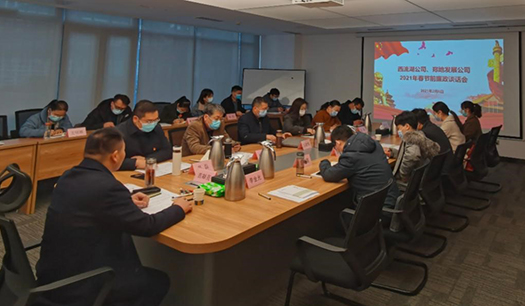 春節(jié)將至,為進一步統(tǒng)一思想、嚴(yán)明紀(jì)律,營造風(fēng)清氣正、崇廉尚儉的節(jié)日氛圍,2月6日上午,西流湖公司黨支部在金岱科創(chuàng)城商務(wù)服務(wù)中心四樓會議室組織召開2021年春節(jié)前廉政談話會。會議由公司黨支部組織委員、副總經(jīng)理昌磊主持,公司黨支部書記、董事長、總經(jīng)理吉獻亮作總結(jié)講話,公司領(lǐng)導(dǎo)班子成員、中層正副職人員,支部黨小組組長共計20余人參加會議。