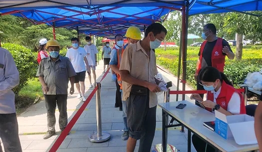由于龍湖社區(qū)內工地數(shù)量多,人員流動性大,檢測人群普遍年齡偏大,給檢測工作著實帶來一定難度。尤其是有一位工友,左腿受傷骨折,打著石膏拄著拐杖來做檢測,他沒有拿身份證且隨行人員都不會熟練操作手機掃碼,但在志愿者的引導下,從帶領他走愛心通道、到協(xié)助錄入信息、幫助他們三人截屏留存以及最終完成檢測,志愿者認真的工作態(tài)度得到了工友和社區(qū)工作者的高度贊揚。檢測期間,志愿小隊統(tǒng)一按照社區(qū)的調度安排,各司其職,專人專崗,一切行動聽指揮,做到了各環(huán)節(jié)專人負責和快速反饋,整體檢測工作快速有序的進行,僅在15日一天,社區(qū)就完成了4000余人次的檢測。來自龍湖社區(qū)的居民表示,第四次核酸檢測相較于前幾次效率明顯提高且秩序良好,從最初的半個小時以上到現(xiàn)在的幾分鐘,這不僅是效率質變,更是廣大一線工作人員的付出心血,大家都非常感謝他們。